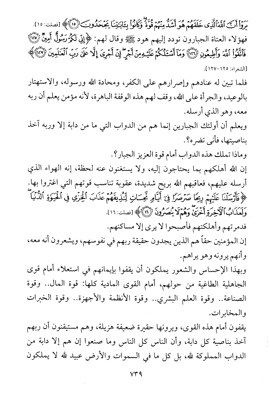 يقفون أمام هذه القوى، ويرونها حقيرة ضعيفة هزيلة، وهم مستيقنون أن ربهم آخذ بناصية كل دابة، وأن الناس كل الناس وما صنعوا إن هم إلا دابة من الدواب المملوكة لله، بل كل ما في السموات والأرض عبيد لله لا يملكون
