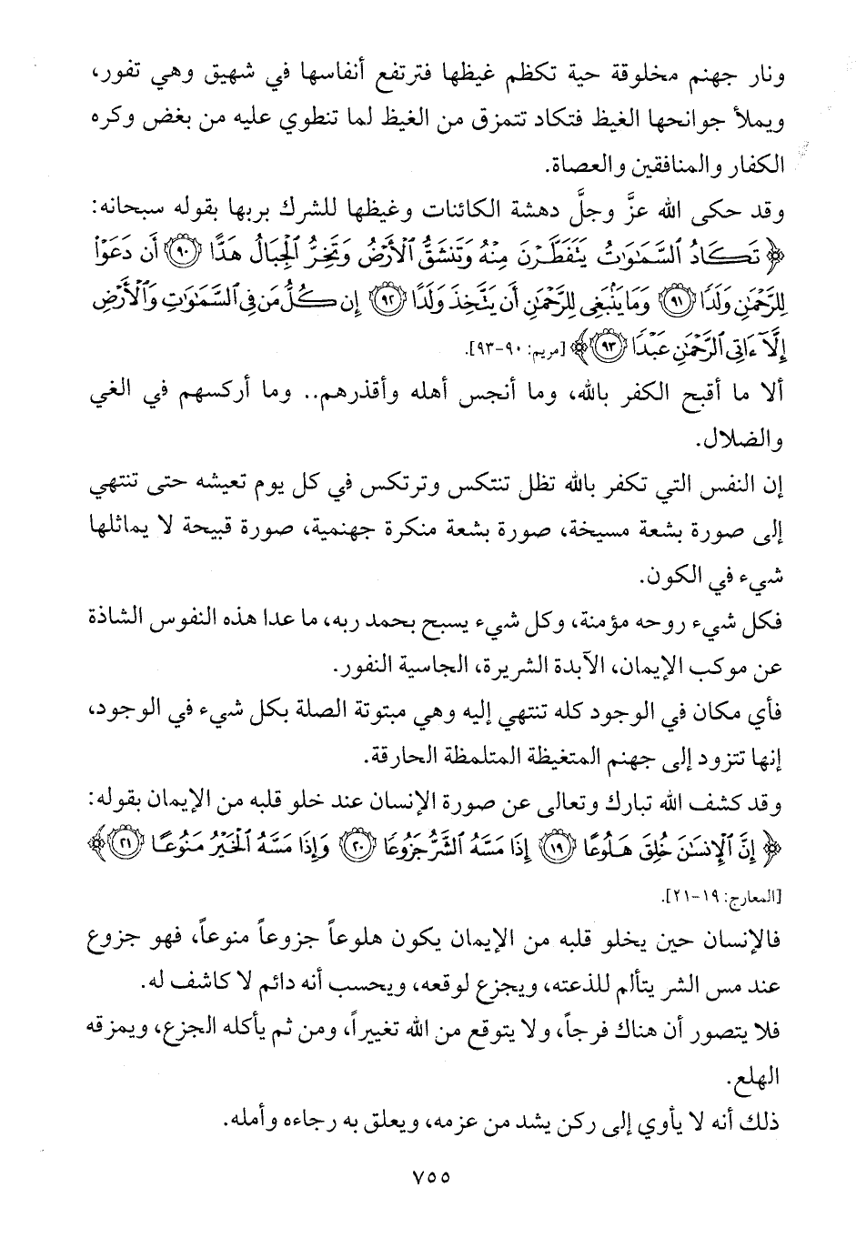 وقد كشف الله تبارك وتعالى عن صورة الإنسان عند خلو قلبه من الإيمان بقوله: {إِنَّ الْإِنْسَانَ خُلِقَ هَلُوعًا (19) إِذَا مَسَّهُ الشَّرُّ جَزُوعًا (20) وَإِذَا مَسَّهُ الْخَيْرُ مَنُوعًا (21)} [المعارج: 19 - 21].