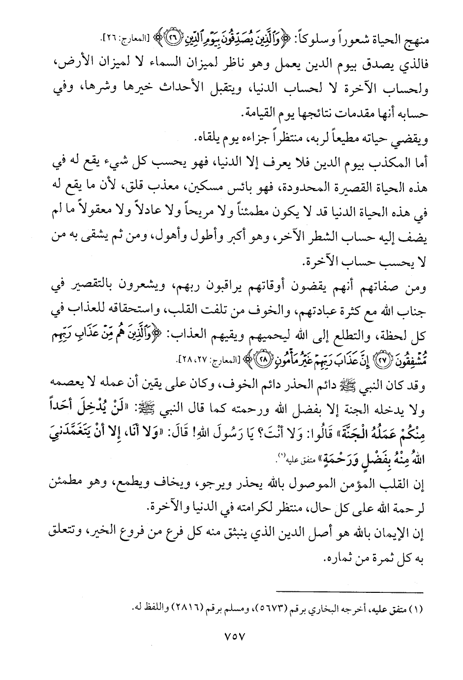منهج الحياة شعوراً وسلوكاً: {وَالَّذِينَ يُصَدِّقُونَ بِيَوْمِ الدِّينِ (26)} [المعارج: 26].