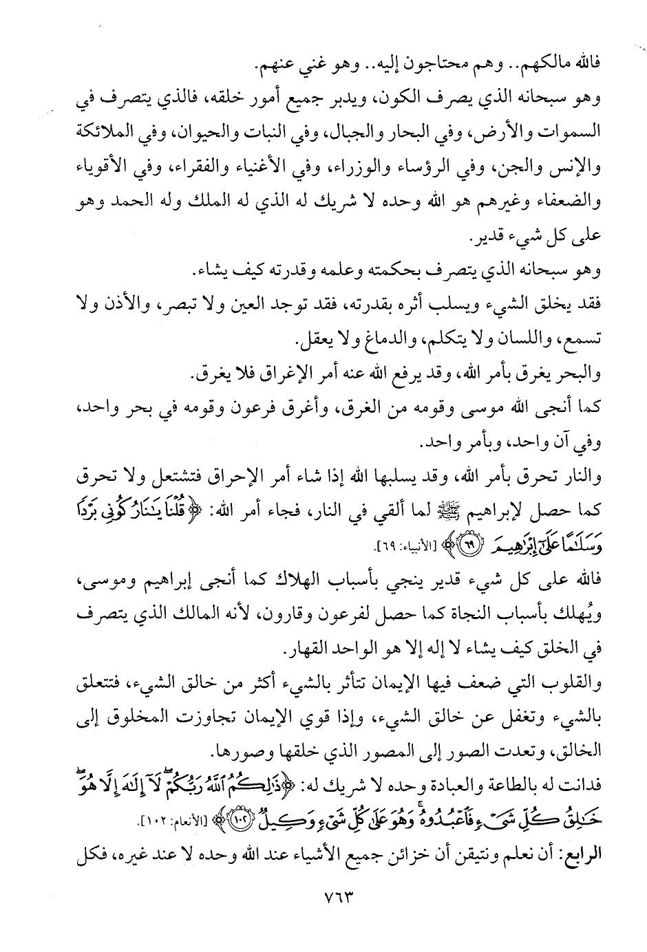 وهو سبحانه الذي يصرف الكون، ويدبر جميع أمور خلقه، فالذي يتصرف في السموات والأرض، وفي البحار والجبال، وفي النبات والحيوان، وفي الملائكة والإنس والجن، وفي الرؤساء والوزراء، وفي الأغنياء والفقراء، وفي الأقوياء والضعفاء وغيرهم هو الله وحده لا شريك له الذي له الملك وله الحمد وهو على كل شيء قدير.
