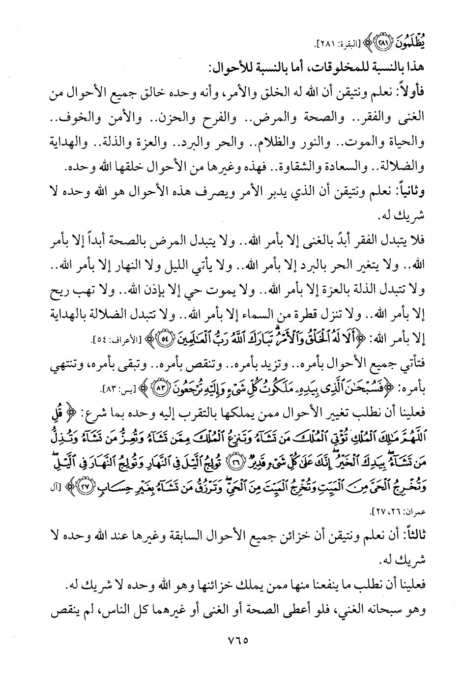 فلا يتبدل الفقر أبدً بالغنى إلا بأمر الله .. ولا يتبدل المرض بالصحة أبداً إلا بأمر الله .. ولا يتغير الحر بالبرد إلا بأمر الله .. ولا يأتي الليل ولا النهار إلا بأمر الله .. ولا تتبدل الذلة بالعزة إلا بأمر الله .. ولا يموت حي إلا بإذن الله .. ولا تهب ريح إلا بأمر الله .. ولا تنزل قطرة من السماء إلا بأمر الله .. ولا تتبدل الضلالة بالهداية إلا بأمر الله: {أَلَا لَهُ الْخَلْقُ وَالْأَمْرُ تَبَارَكَ اللَّهُ رَبُّ الْعَالَمِينَ (54)} [الأعراف: 54].