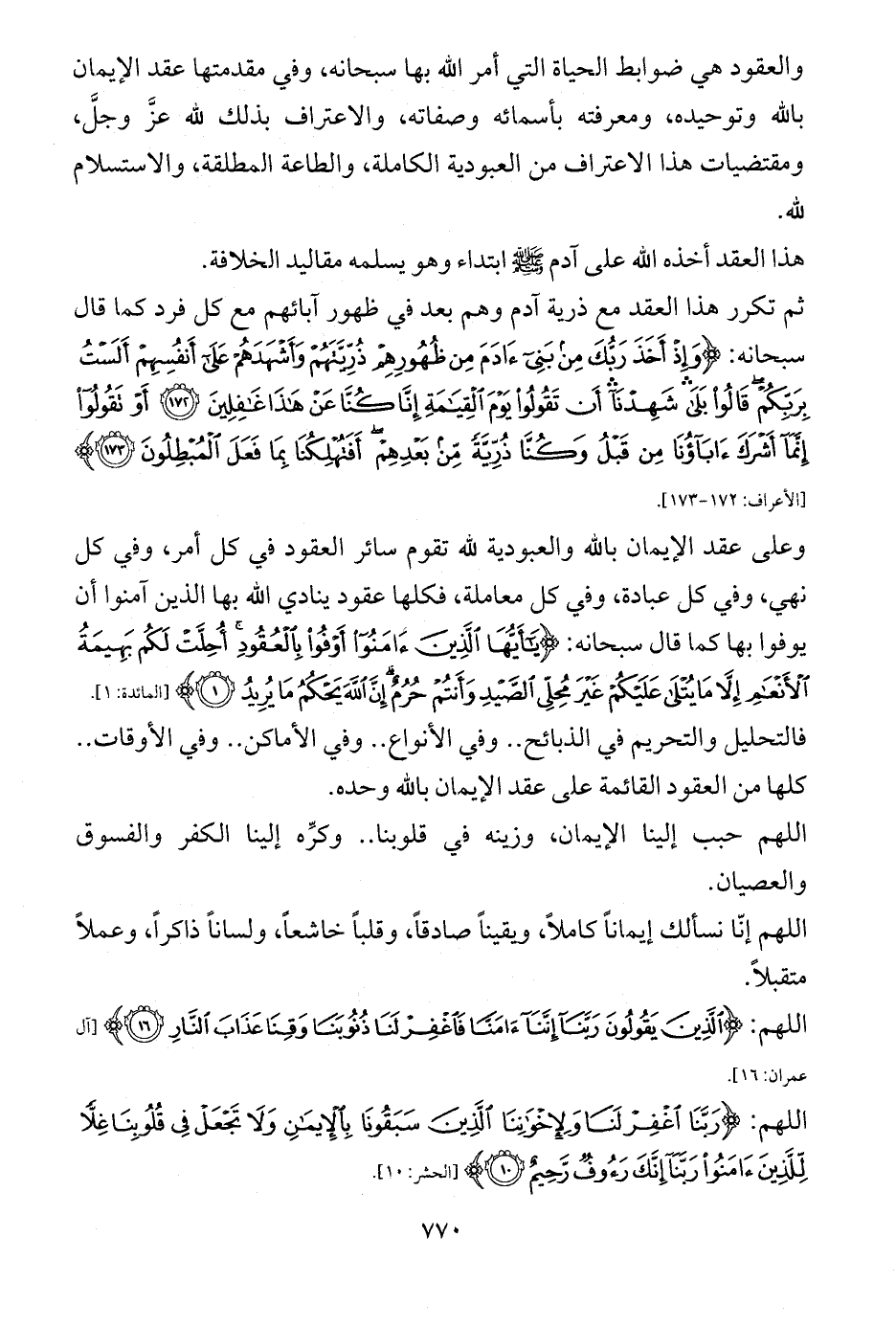 وعلى عقد الإيمان بالله والعبودية لله تقوم سائر العقود في كل أمر، وفي كل نهي، وفي كل عبادة، وفي كل معاملة، فكلها عقود ينادي الله بها الذين آمنوا أن يوفوا بها كما قال سبحانه: {يَاأَيُّهَا الَّذِينَ آمَنُوا أَوْفُوا بِالْعُقُودِ أُحِلَّتْ لَكُمْ بَهِيمَةُ الْأَنْعَامِ إِلَّا مَا يُتْلَى عَلَيْكُمْ غَيْرَ مُحِلِّي الصَّيْدِ وَأَنْتُمْ حُرُمٌ إِنَّ اللَّهَ يَحْكُمُ مَا يُرِيدُ (1)} [المائدة: 1].