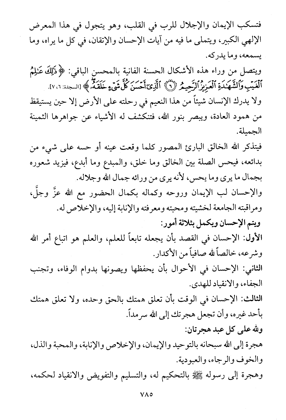 ويتم الإحسان ويكمل بثلاثة أمور:
