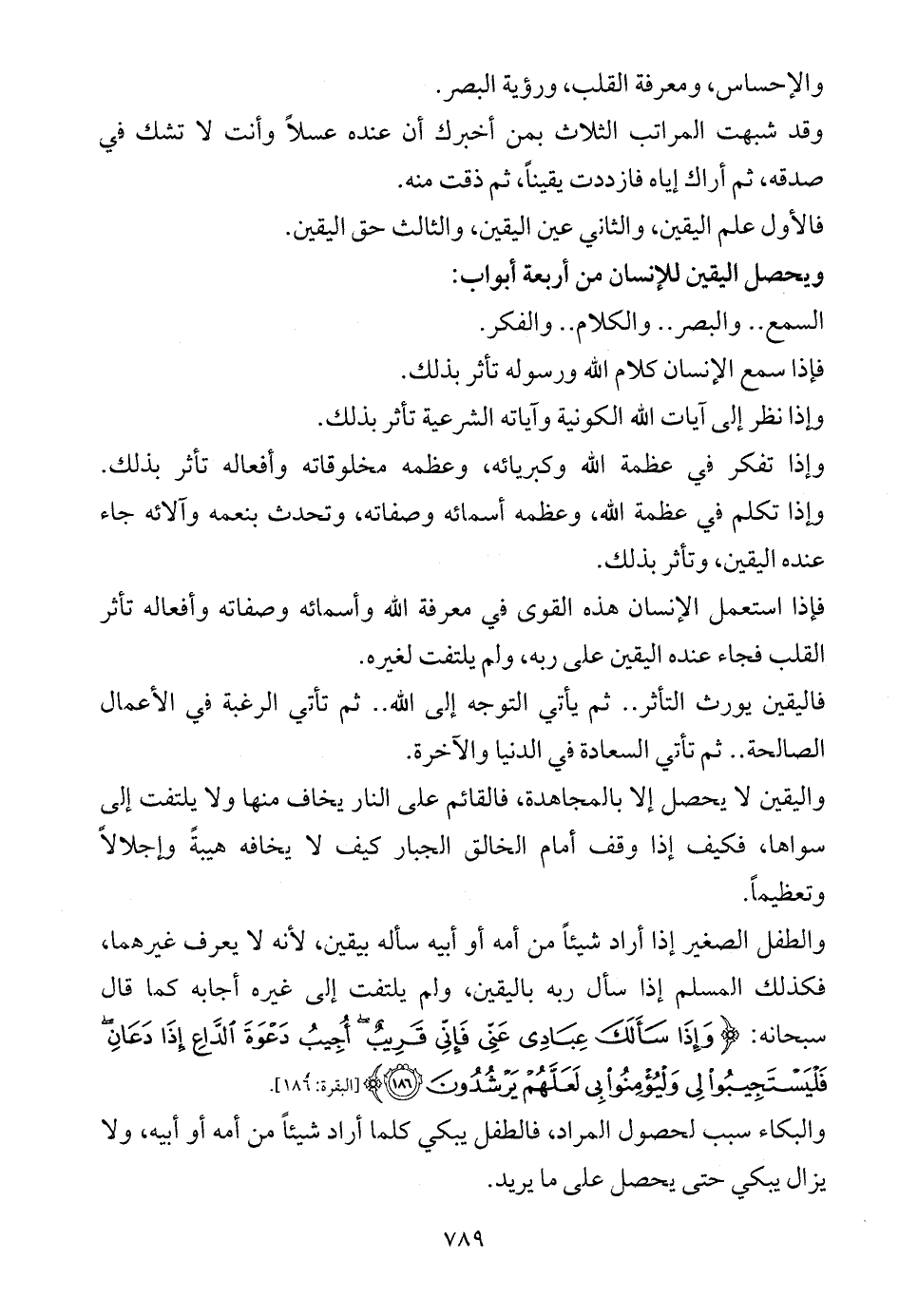 فالأول علم اليقين، والثاني عين اليقين، والثالث حق اليقين.