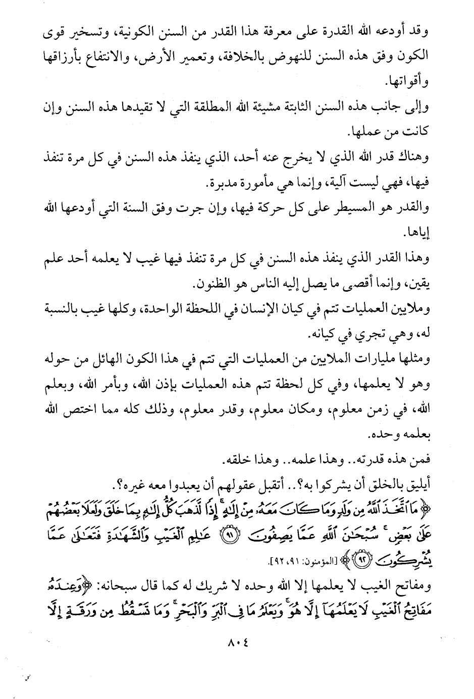 {مَا اتَّخَذَ اللَّهُ مِنْ وَلَدٍ وَمَا كَانَ مَعَهُ مِنْ إِلَهٍ إِذًا لَذَهَبَ كُلُّ إِلَهٍ بِمَا خَلَقَ وَلَعَلَا بَعْضُهُمْ عَلَى بَعْضٍ سُبْحَانَ اللَّهِ عَمَّا يَصِفُونَ (91) عَالِمِ الْغَيْبِ وَالشَّهَادَةِ فَتَعَالَى عَمَّا يُشْرِكُونَ (92)} [المؤمنون: 91، 92].