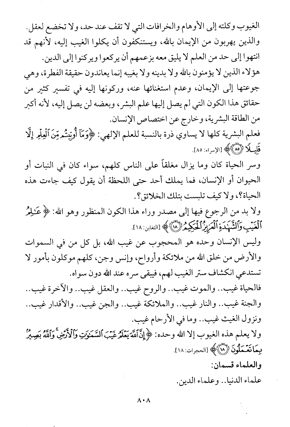 ولا بد من الرجوع فيها إلى مصدر وراء هذا الكون المنظور وهو الله: {عَالِمُ الْغَيْبِ وَالشَّهَادَةِ الْعَزِيزُ الْحَكِيمُ (18)} [التغابن: 18].