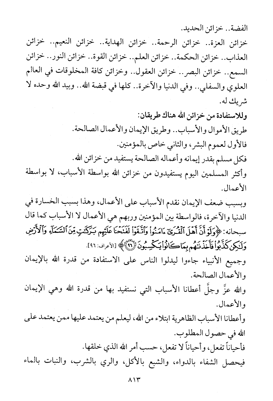 وأكثر المسلمين اليوم يستفيدون من خزائن الله بواسطة الأسباب، لا بواسطة الأعمال.