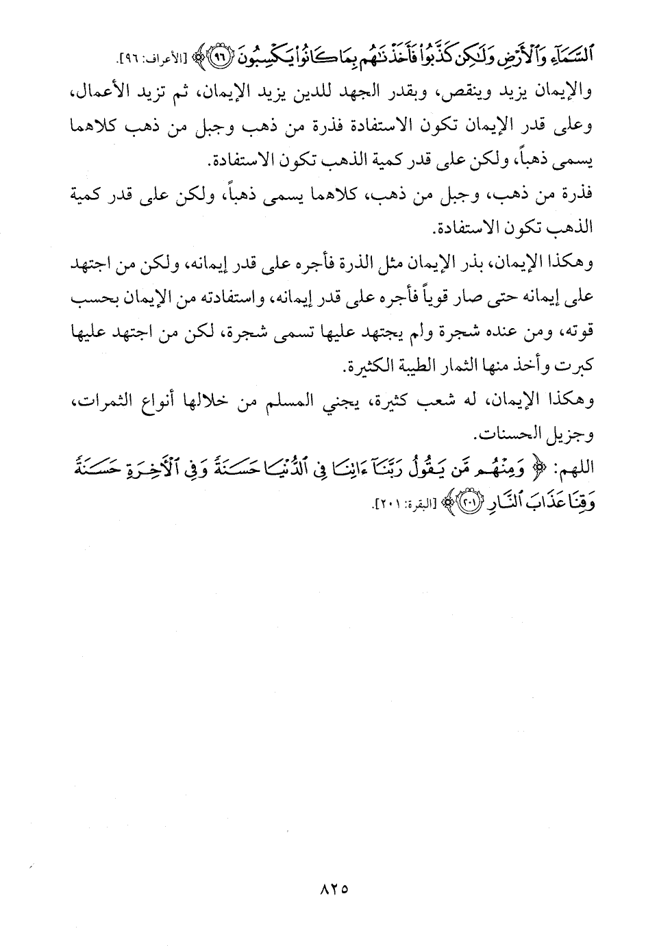 والإيمان يزيد وينقص، وبقدر الجهد للدين يزيد الإيمان، ثم تزيد الأعمال، وعلى قدر الإيمان تكون الاستفادة فذرة من ذهب وجبل من ذهب كلاهما يسمى ذهباً، ولكن على قدر كمية الذهب تكون الاستفادة.
