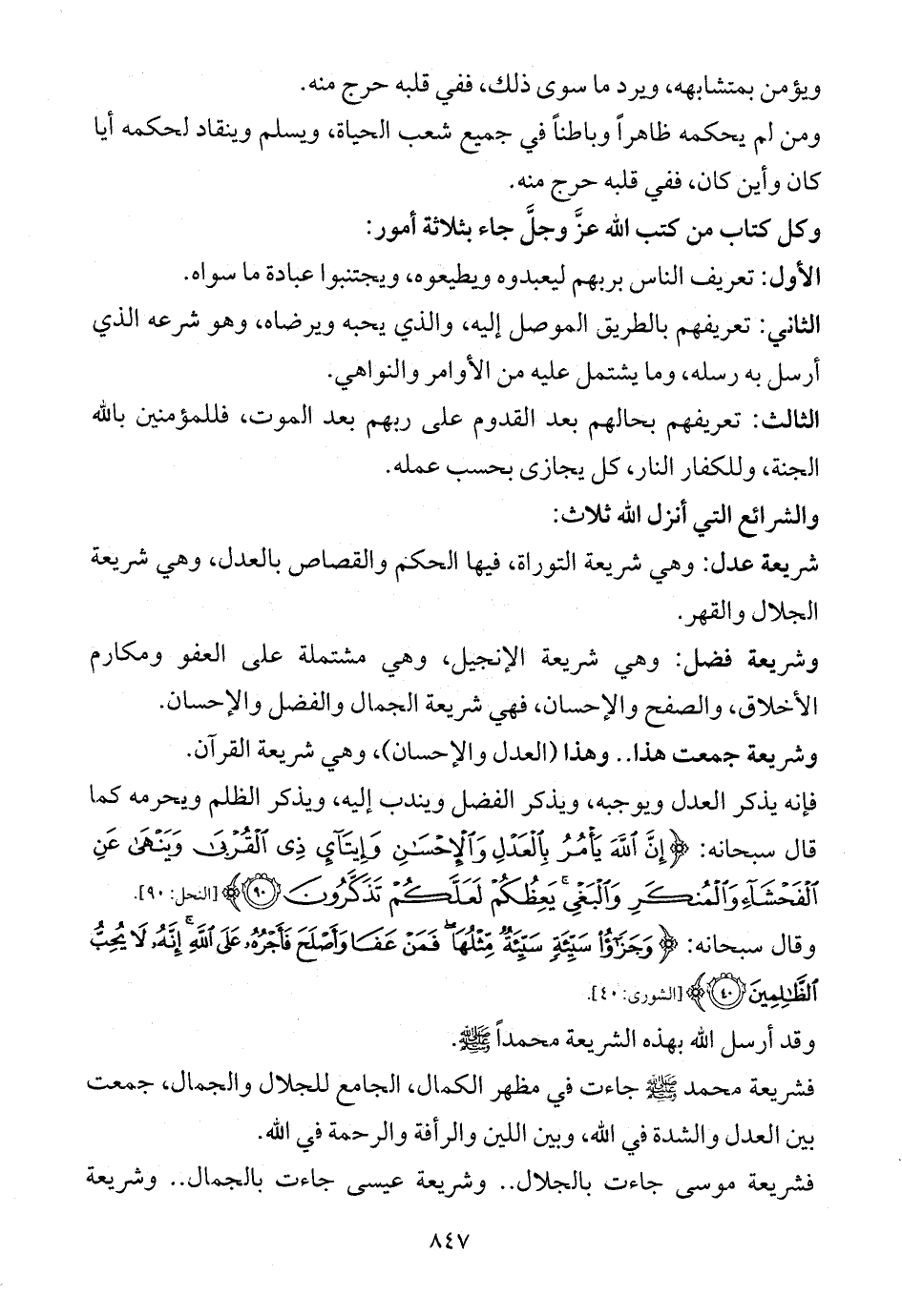 وشريعة جمعت هذا .. وهذا (العدل والإحسان)، وهي شريعة القرآن.