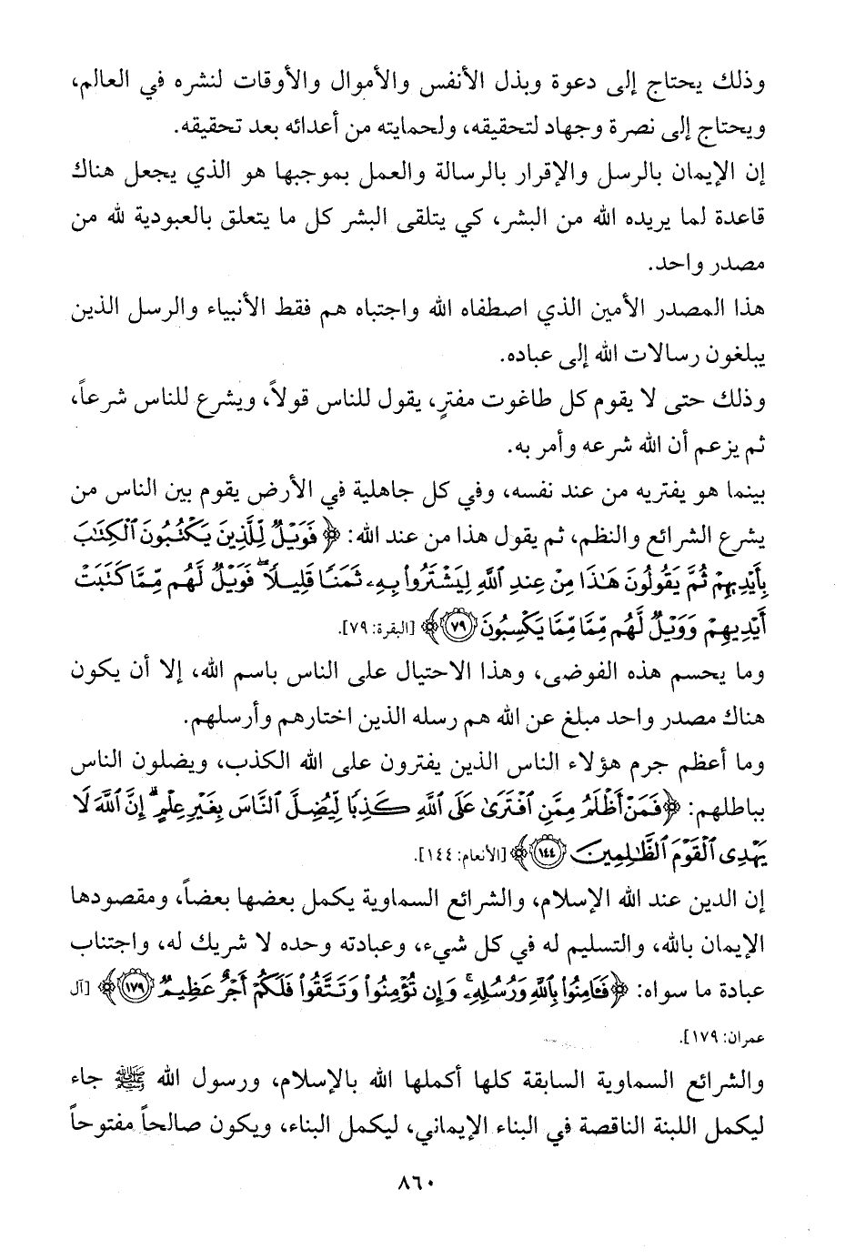 إن الدين عند الله الإسلام، والشرائع السماوية يكمل بعضها بعضاً، ومقصودها الإيمان بالله، والتسليم له في كل شيء، وعبادته وحده لا شريك له، واجتناب عبادة ما سواه: {فَآمِنُوا بِاللَّهِ وَرُسُلِهِ وَإِنْ تُؤْمِنُوا وَتَتَّقُوا فَلَكُمْ أَجْرٌ عَظِيمٌ (179)} [آل عمران: 179].