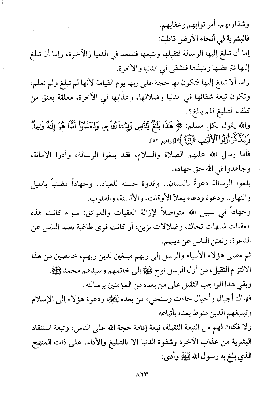 والله يقول لكل مسلم: {هَذَا بَلَاغٌ لِلنَّاسِ وَلِيُنْذَرُوا بِهِ وَلِيَعْلَمُوا أَنَّمَا هُوَ إِلَهٌ وَاحِدٌ وَلِيَذَّكَّرَ أُولُو الْأَلْبَابِ (52)} [إبراهيم: 52].