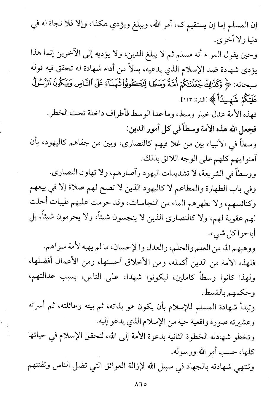 فهذه الأمة عدل خيار وسط، وما عدا الوسط فأطراف داخلة تحت الخطر.