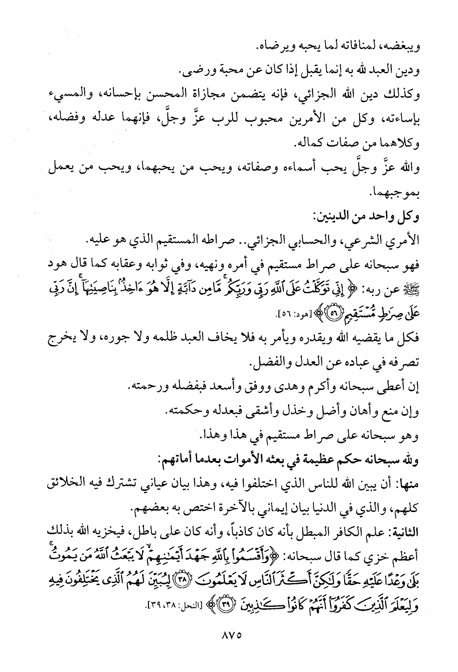 فهو سبحانه على صراط مستقيم في أمره ونهيه، وفي ثوابه وعقابه كما قال هود - صلى الله عليه وسلم - عن ربه: {إِنِّي تَوَكَّلْتُ عَلَى اللَّهِ رَبِّي وَرَبِّكُمْ مَا مِنْ دَابَّةٍ إِلَّا هُوَ آخِذٌ بِنَاصِيَتِهَا إِنَّ رَبِّي عَلَى صِرَاطٍ مُسْتَقِيمٍ (56)} [هود: 56].