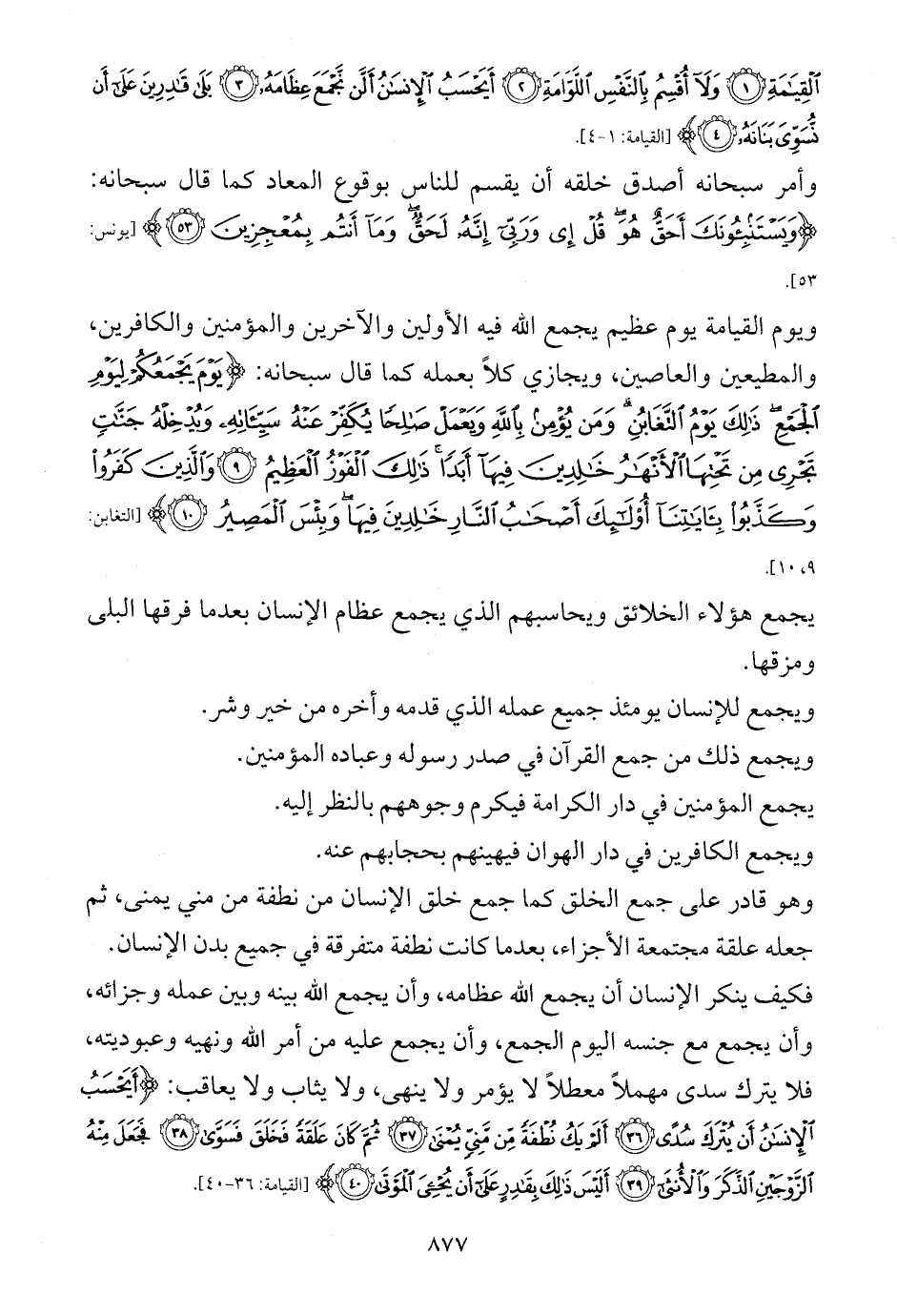 فكيف ينكر الإنسان أن يجمع الله عظامه، وأن يجمع الله بينه وبين عمله وجزائه، وأن يجمع مع جنسه اليوم الجمع، وأن يجمع عليه من أمر الله ونهيه وعبوديته، فلا يترك سدى مهملاً معطلاً لا يؤمر ولا ينهى، ولا يثاب ولا يعاقب: {أَيَحْسَبُ الْإِنْسَانُ أَنْ يُتْرَكَ سُدًى (36) أَلَمْ يَكُ نُطْفَةً مِنْ مَنِيٍّ يُمْنَى (37) ثُمَّ كَانَ عَلَقَةً فَخَلَقَ فَسَوَّى (38) فَجَعَلَ مِنْهُ الزَّوْجَيْنِ الذَّكَرَ وَالْأُنْثَى (39) أَلَيْسَ ذَلِكَ بِقَادِرٍ عَلَى أَنْ يُحْيِيَ الْمَوْتَى (40)} [القيامة: 36 - 40].