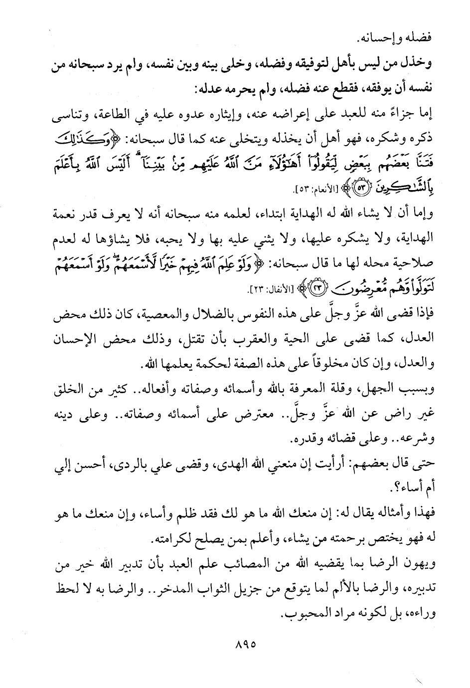 فإذا قضى الله عزَّ وجلَّ على هذه النفوس بالضلال والمعصية، كان ذلك محض العدل، كما قضى على الحية والعقرب بأن تقتل، وذلك محض الإحسان والعدل، وإن كان مخلوقاً على هذه الصفة لحكمة يعلمها الله.