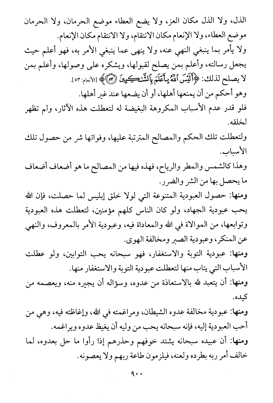ومنها: حصول العبودية المتنوعة التي لولا خلق إبليس لما حصلت، فإن الله يحب عبودية الجهاد، ولو كان الناس كلهم مؤمنين، لتعطلت هذه العبودية وتوابعها، من الموالاة في الله والمعاداة فيه، وعبودية الأمر بالمعروف، والنهي عن المنكر، وعبودية الصبر ومخالفة الهوى.