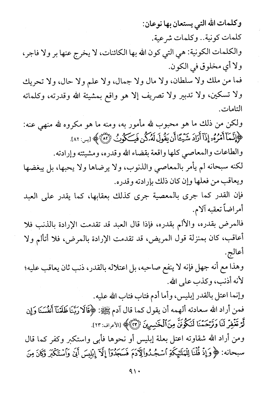 والكلمات الكونية: هي التي كون الله بها الكائنات، لا يخرج عنها بر ولا فاجر، ولا أي مخلوق في الكون.