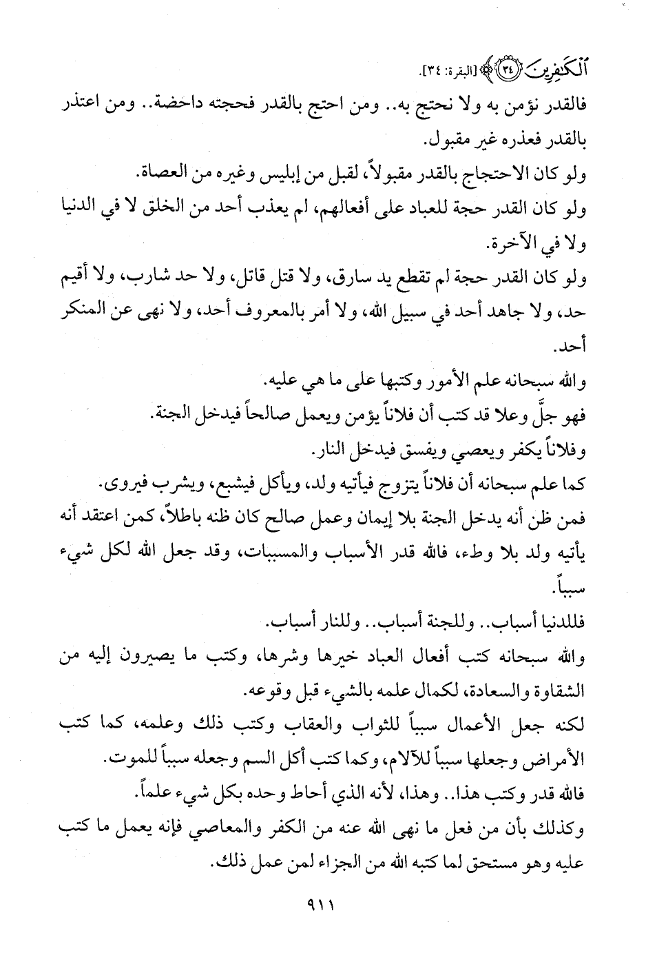 ولو كان القدر حجة لم تقطع يد سارق، ولا قتل قاتل، ولا حد شارب، ولا أقيم حد، ولا جاهد أحد في سبيل الله، ولا أمر بالمعروف أحد، ولا نهى عن المنكر أحد.