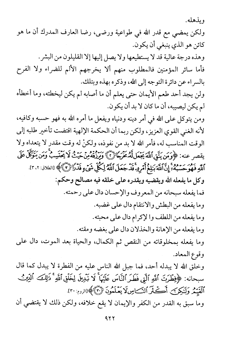 ومن يتوكل على الله في أمر دينه ودنياه ويفعل ما أمره الله به فهو حسبه وكافيه، لأنه الغني القوي العزيز، ولكن ربما أن الحكمة الإلهية اقتضت تأخير طلبه إلى الوقت المناسب له، فأمر الله لا بد من نفوذه، ولكنْ له وقت مقدر لا يتعداه ولا يقصر عنه: {وَمَنْ يَتَّقِ اللَّهَ يَجْعَلْ لَهُ مَخْرَجًا (2) وَيَرْزُقْهُ مِنْ حَيْثُ لَا يَحْتَسِبُ وَمَنْ يَتَوَكَّلْ عَلَى اللَّهِ فَهُوَ حَسْبُهُ إِنَّ اللَّهَ بَالِغُ أَمْرِهِ قَدْ جَعَلَ اللَّهُ لِكُلِّ شَيْءٍ قَدْرًا (3)} [الطلاق: 2، 3].