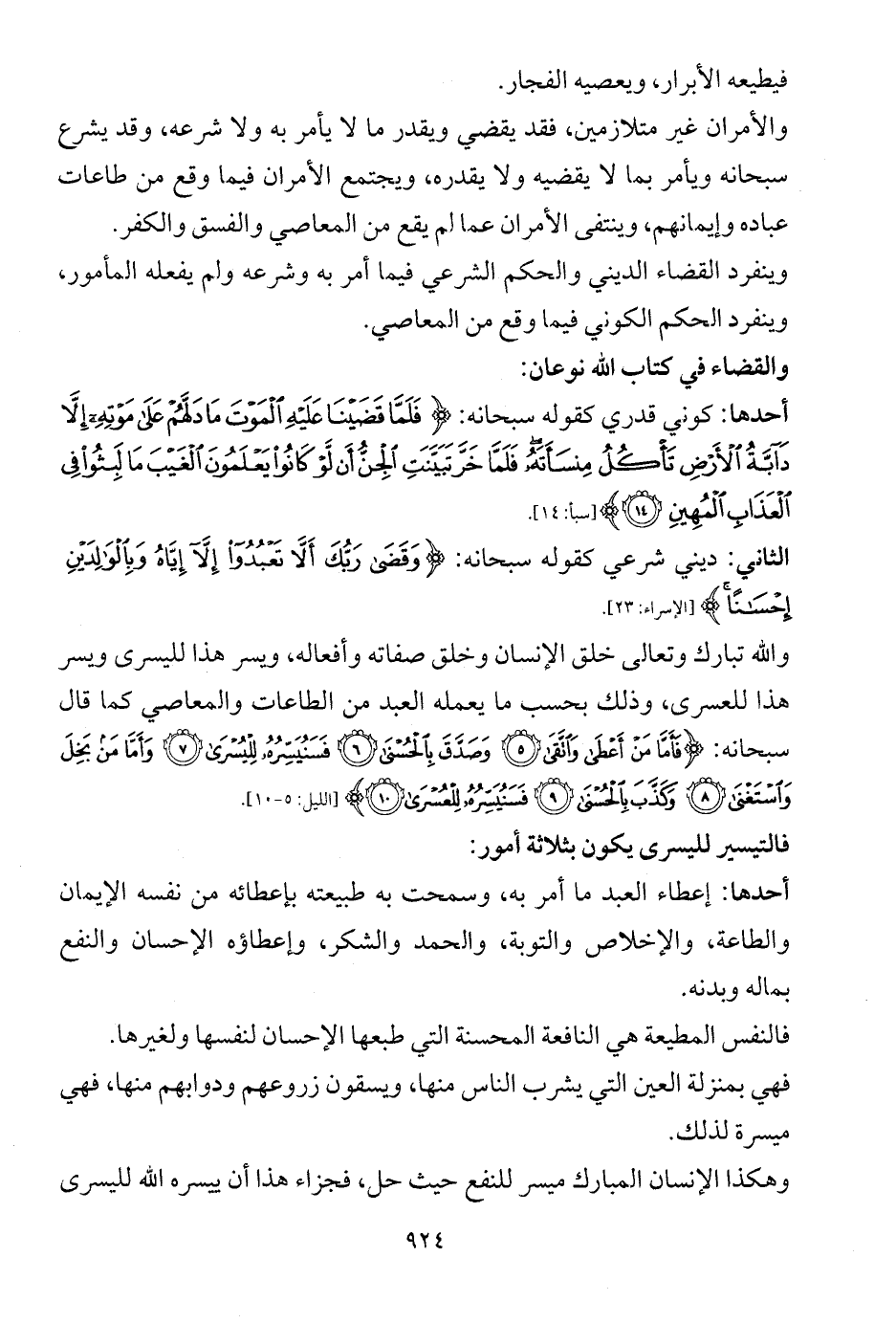 الثاني: ديني شرعي كقوله سبحانه: {وَقَضَى رَبُّكَ أَلَّا تَعْبُدُوا إِلَّا إِيَّاهُ وَبِالْوَالِدَيْنِ إِحْسَانًا} [الإسراء: 23].
