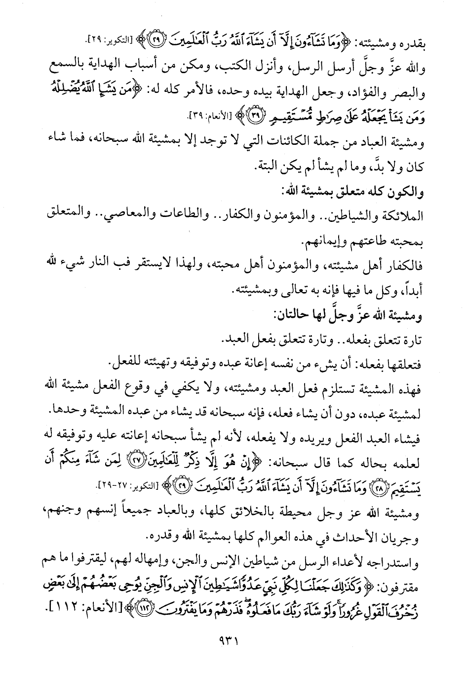 ومشيئة العباد من جملة الكائنات التي لا توجد إلا بمشيئة الله سبحانه، فما شاء كان ولا بدَّ، وما لم يشأ لم يكن البتة.