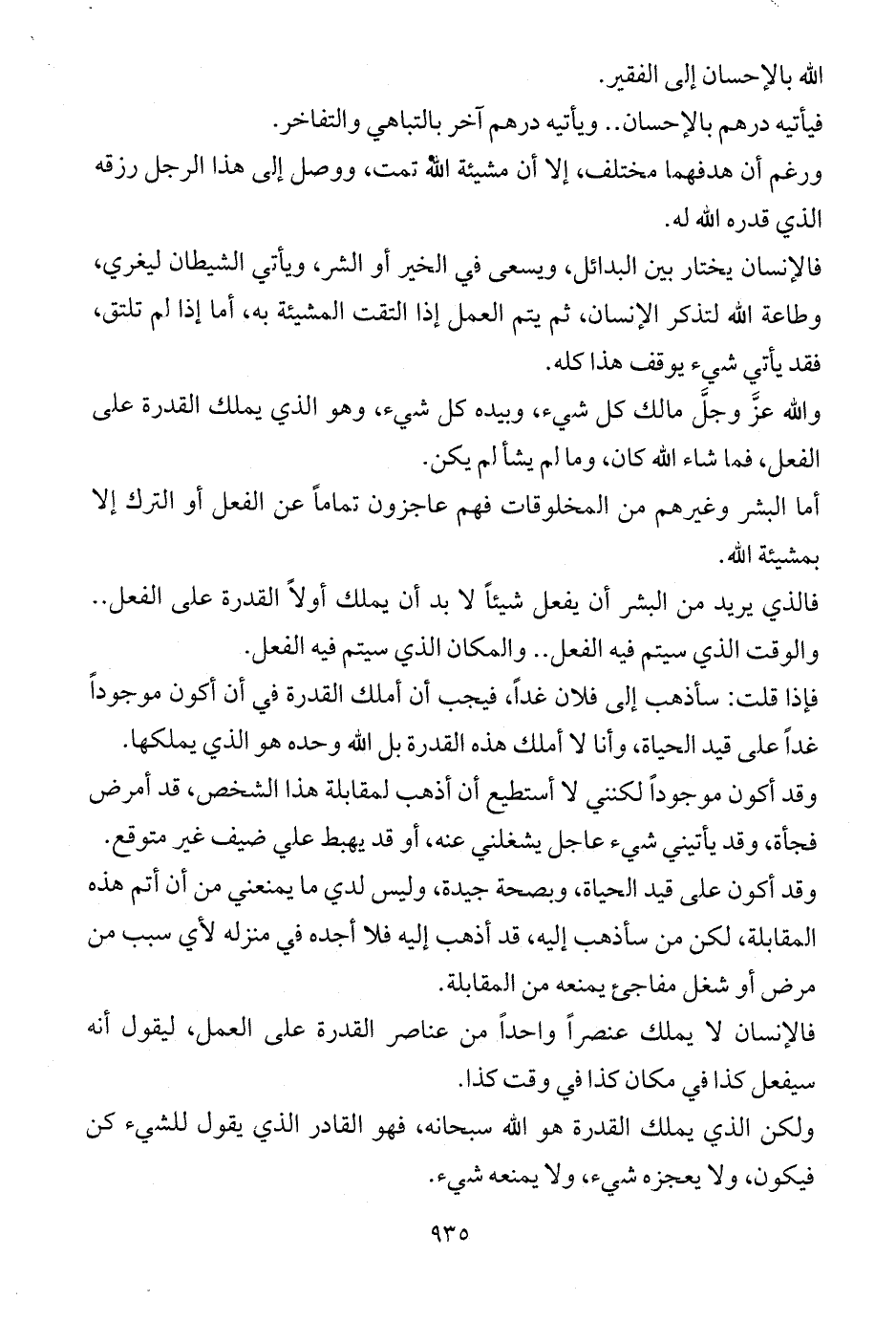 فالإنسان لا يملك عنصراً واحداً من عناصر القدرة على العمل، ليقول أنه سيفعل كذا في مكان كذا في وقت كذا.