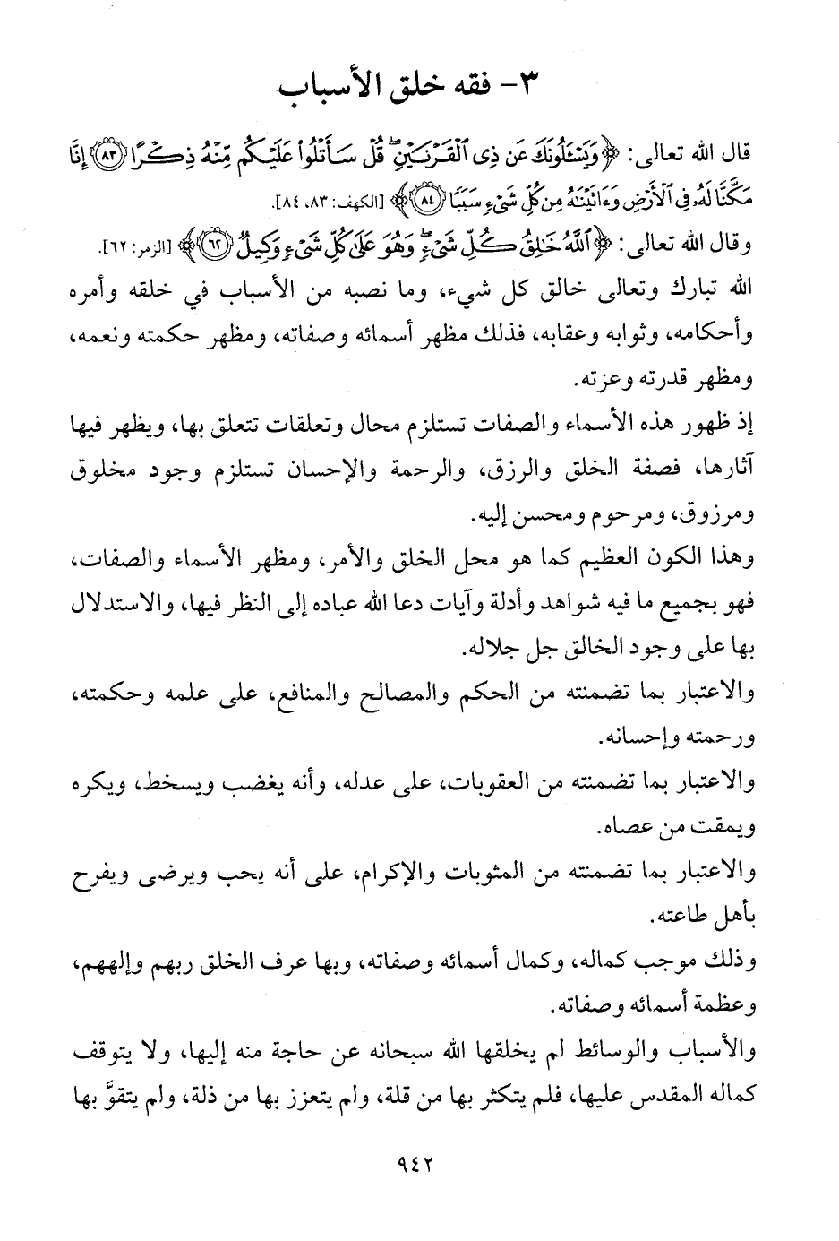 الله تبارك وتعالى خالق كل شيء، وما نصبه من الأسباب في خلقه وأمره وأحكامه، وثوابه وعقابه، فذلك مظهر أسمائه وصفاته، ومظهر حكمته ونعمه، ومظهر قدرته وعزته.