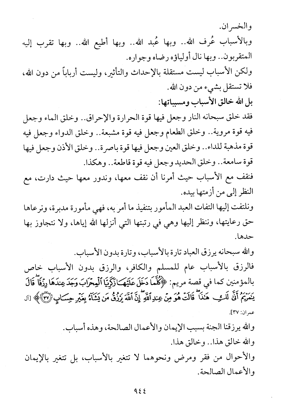 وبالأسباب عُرف الله .. وبها عُبد الله .. وبها أطيع الله .. وبها تقرب إليه المتقربون .. وبها نال أولياؤه رضاه وجواره.