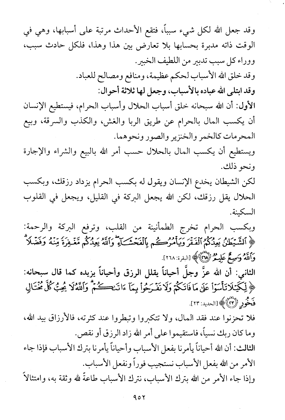 وقد ابتلى الله عباده بالأسباب، وجعل لها ثلاثة أحوال: