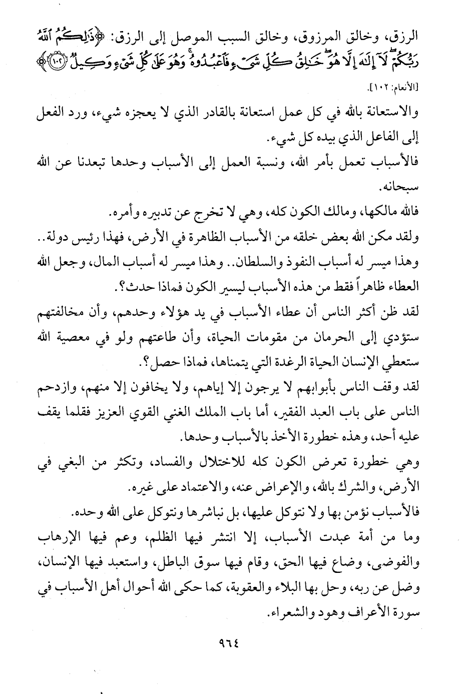 لقد وقف الناس بأبوابهم لا يرجون إلا إياهم، ولا يخافون إلا منهم، وازدحم الناس على باب العبد الفقير، أما باب الملك الغني القوي العزيز فقلما يقف عليه أحد، وهذه خطورة الأخذ بالأسباب وحدها.