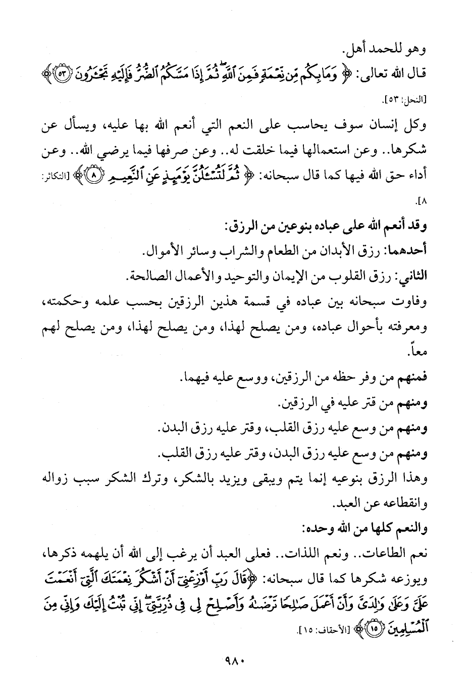 نعم الطاعات .. ونعم اللذات .. فعلى العبد أن يرغب إلى الله أن يلهمه ذكرها، ويوزعه شكرها كما قال سبحانه: {قَالَ رَبِّ أَوْزِعْنِي أَنْ أَشْكُرَ نِعْمَتَكَ الَّتِي أَنْعَمْتَ عَلَيَّ وَعَلَى وَالِدَيَّ وَأَنْ أَعْمَلَ صَالِحًا تَرْضَاهُ وَأَصْلِحْ لِي فِي ذُرِّيَّتِي إِنِّي تُبْتُ إِلَيْكَ وَإِنِّي مِنَ الْمُسْلِمِينَ (15)} [الأحقاف: 15].