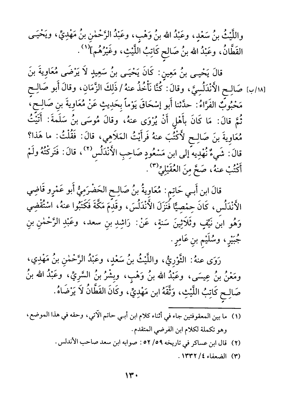 والليث بن سعد، وعبد الله بن وهب، وعبد الرحمن بن مهدي، ويحيى القطان، وعبد الله بن صالح كاتب الليث، وغيرهم]