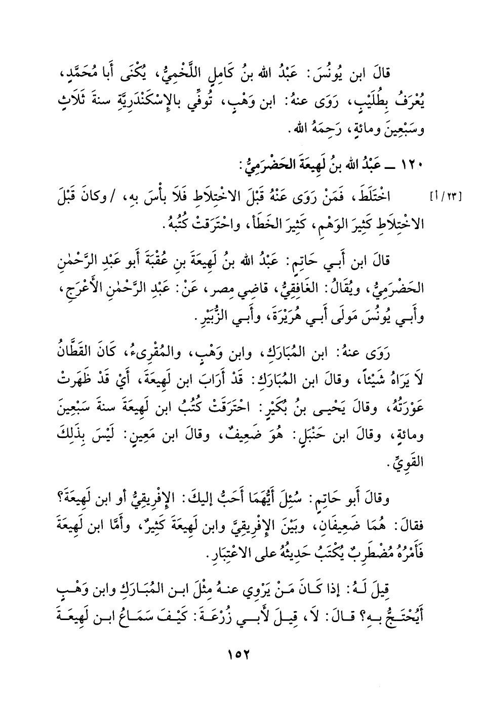 قال ابن أبي حاتم: عبد الله بن لهيعة بن عقبة أبو عبد الرحمن الحضرمي، ويقال: الغافقي، قاضي مصر، عن: عبد الرحمن الأعرج، وأبي يونس مولى أبي هريرة، وأبي الزبير.