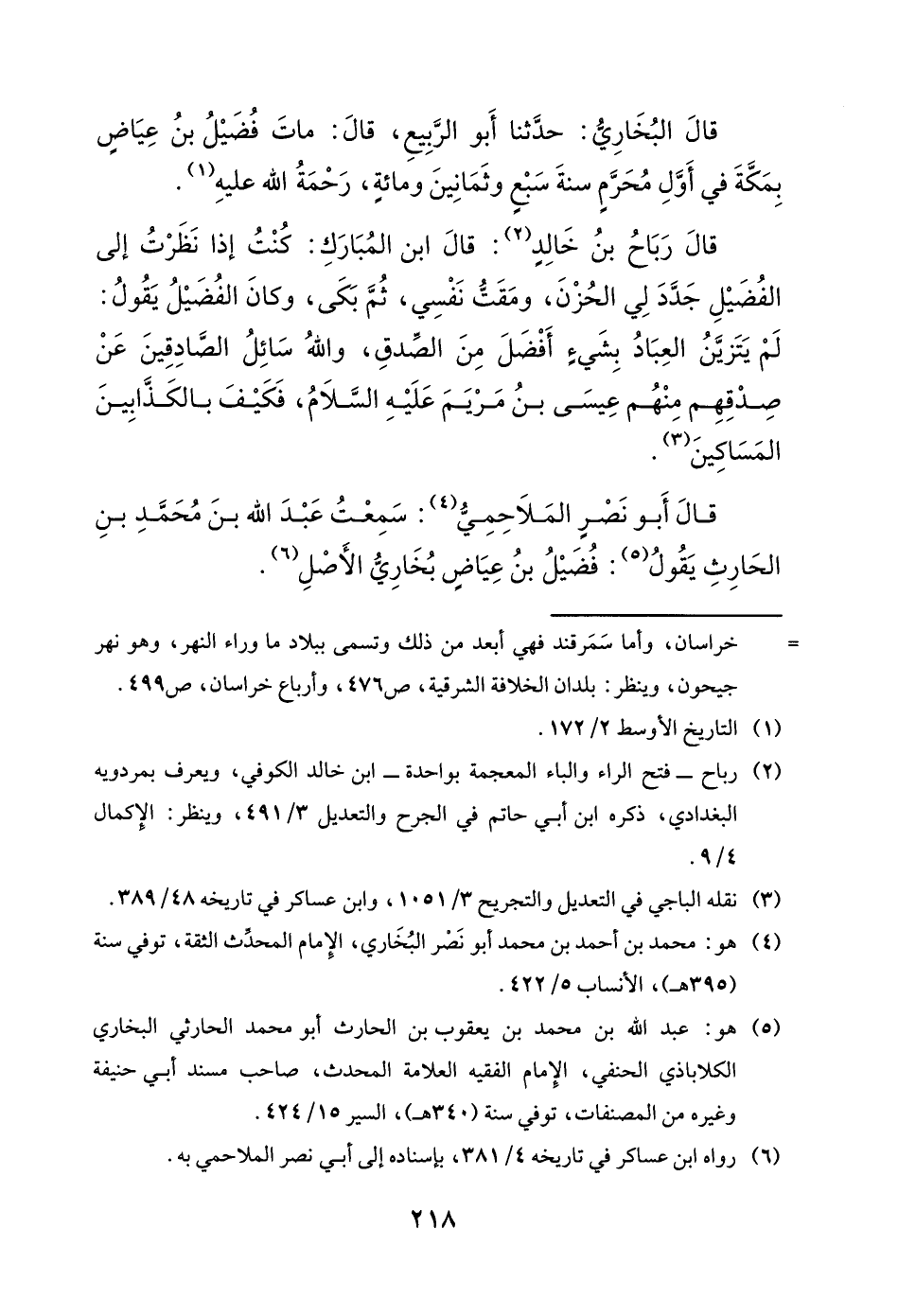 قال أبو نصر الملاحمي: سمعت عبد الله بن محمد بن الحارث يقول: فضيل بن عياض بخاري الأصل.