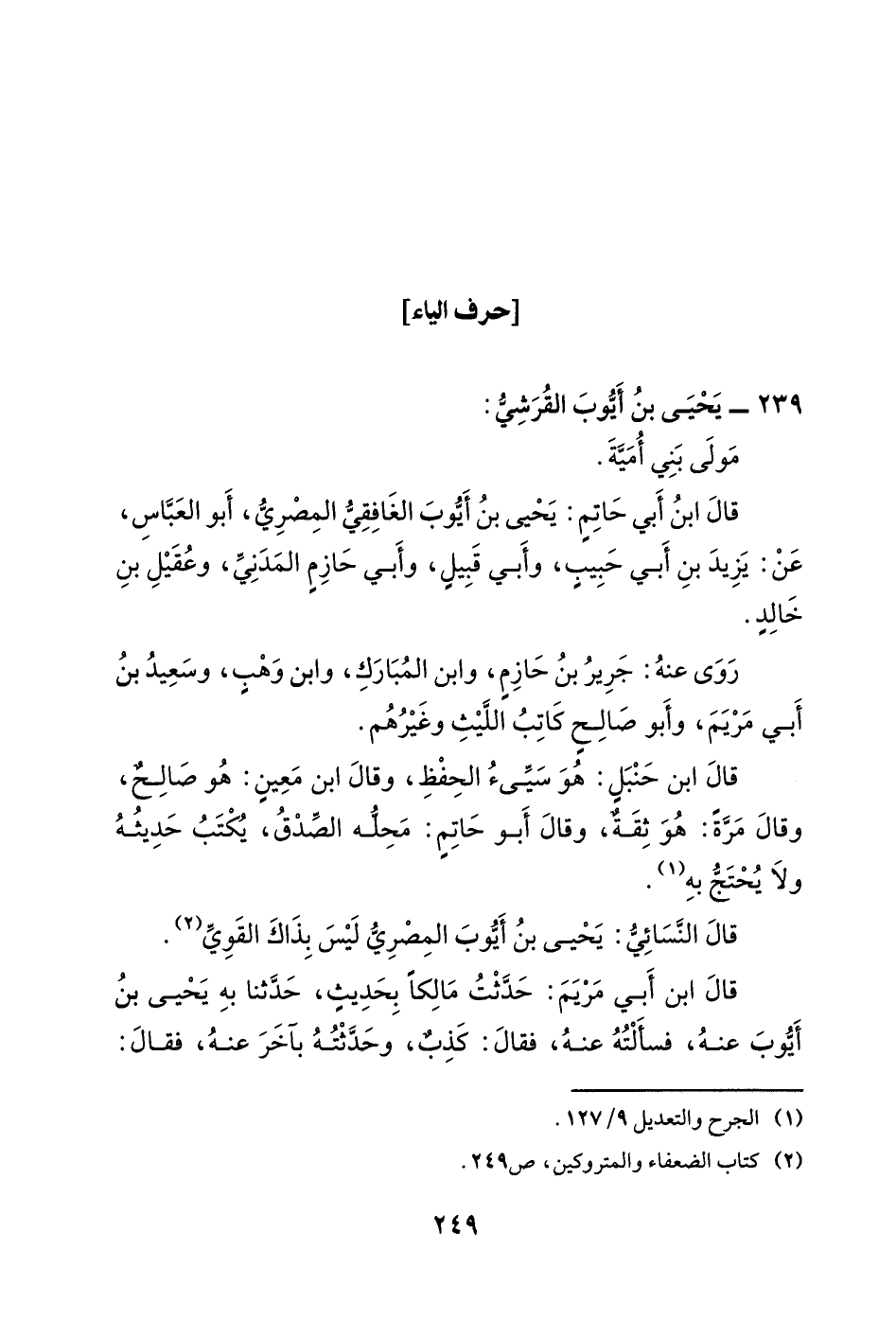 قال ابن أبي حاتم: يحيى بن أيوب الغافقي المصري، أبو العباس، عن: يزيد بن أبي حبيب، وأبي قبيل، وأبي حازم المدني، وعقيل بن خالدٍ.