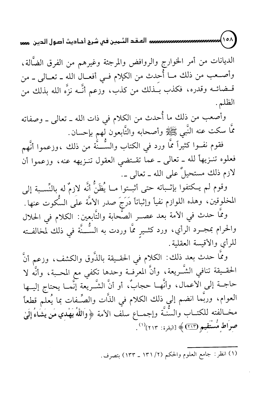 وأصعب من ذلك ما أحدث من الكلام في ذات الله تعالى وصفاته مما سكت عنه النبي صلى الله عليه وسلم وأصحابه والتابعون لهم بإحسان.