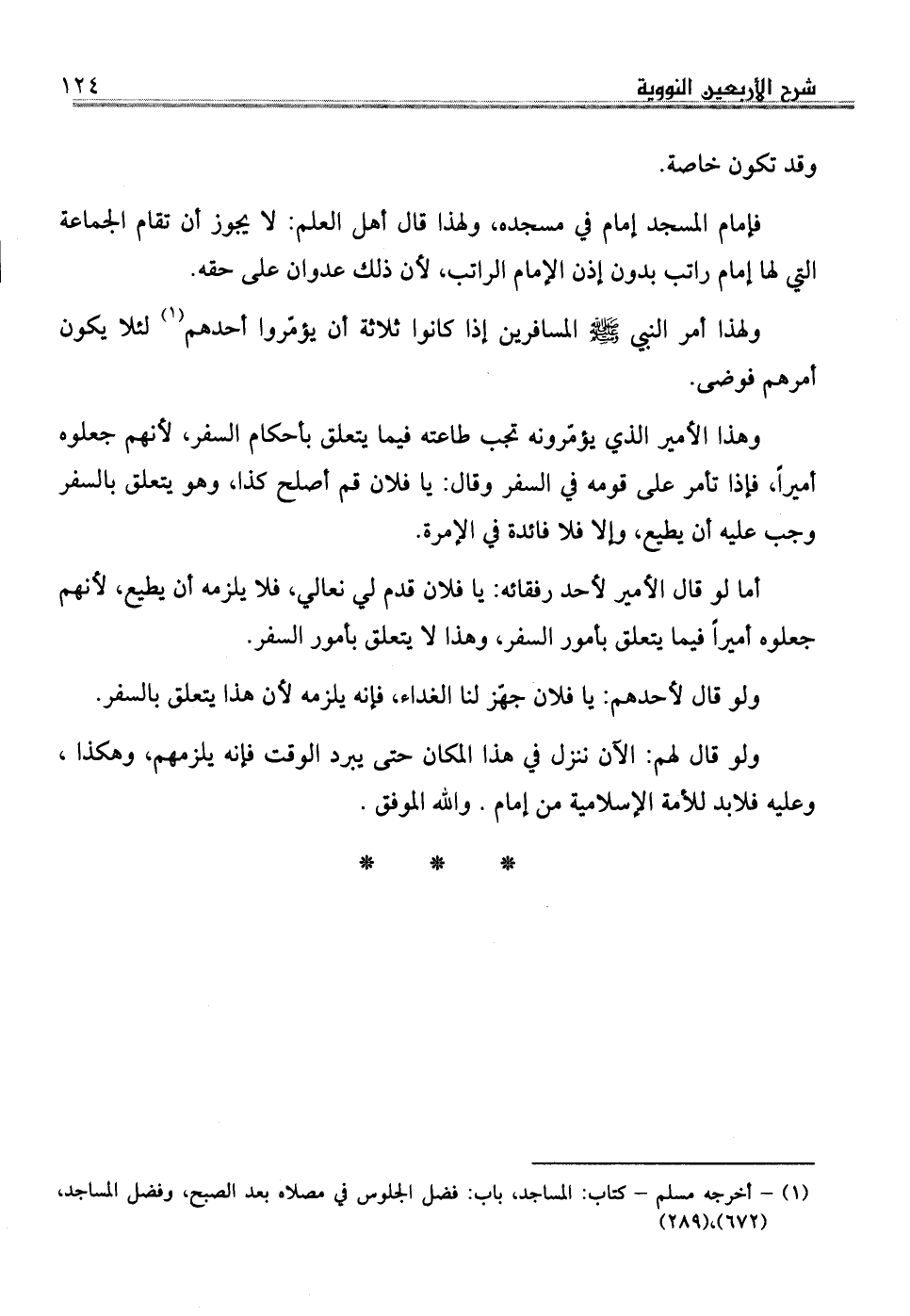 ولو قال لهم: الآن ننزل في هذا المكان حتى يبرد الوقت فإنه يلزمهم، وهكذا، وعليه فلابد للأمة الإسلامية من إمام. والله الموفق.