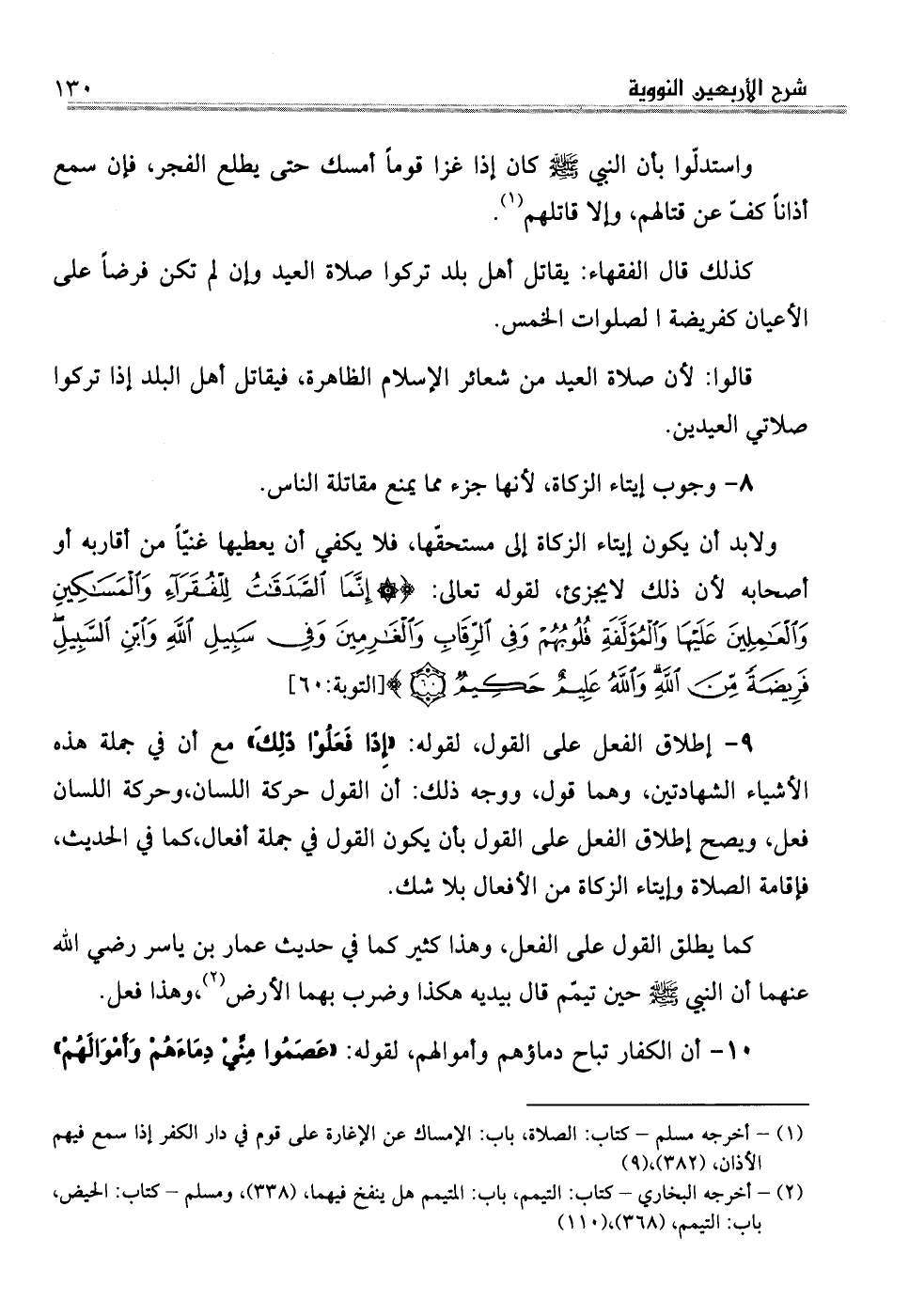 . 8وجوب إيتاء الزكاة، لأنها جزء مما يمنع مقاتلة الناس.