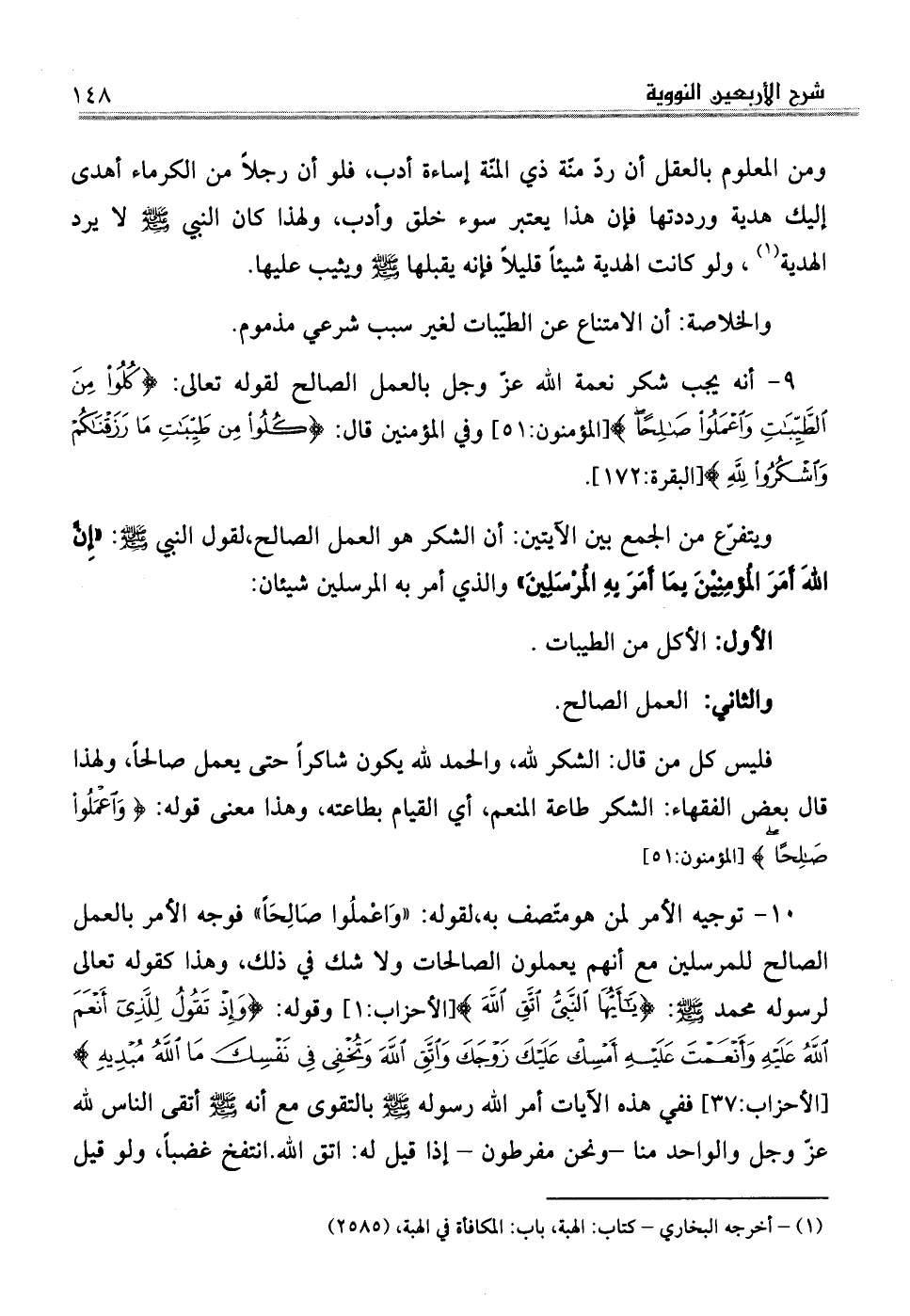 9أنه يجب شكر نعمة الله عزّ وجل بالعمل الصالح لقوله تعالى: (كُلُوا مِنَ الطَّيِّبَاتِ وَاعْمَلُوا صَالِحاً) (المؤمنون: الآية51) وفي المؤمنين قال: (كُلُوا مِنْ طَيِّبَاتِ مَا رَزَقْنَاكُمْ وَاشْكُرُوا لِلَّه) (البقرة: الآية172)