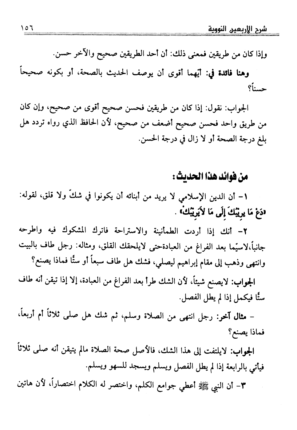 . 1أن الدين الإسلامي لا يريد من أبنائه أن يكونوا في شكّ ولا قلق، لقوله: دَعْ مَا يرِيْبُكَ إِلَى مَا لاَيَرِيْبُكْ.