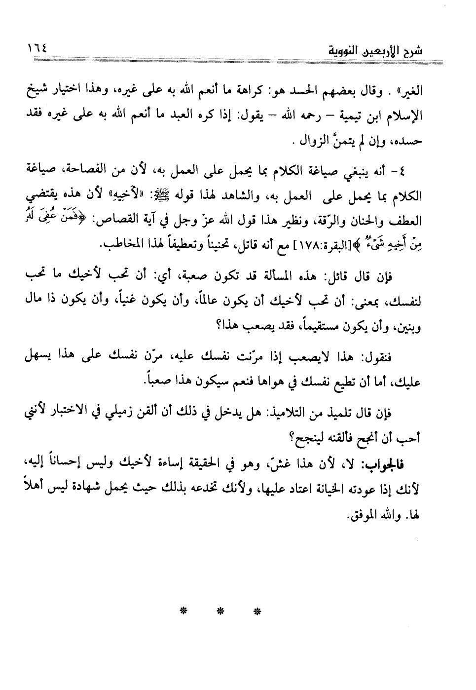 . 4أنه ينبغي صياغة الكلام بما يحمل على العمل به، لأن من الفصاحة، صياغة الكلام بما يحمل على العمل به، والشاهد لهذا قوله: "لأَخِيهِ" لأن هذه يقتضي العطف والحنان والرّقة، ونظير هذا قول الله عزّ وجل في آية القصاص: (فَمَنْ عُفِيَ لَهُ مِنْ أَخِيهِ شَيْء) (البقرة: الآية178) مع أنه قاتل، تحنيناً وتعطيفاً لهذا المخاطب.