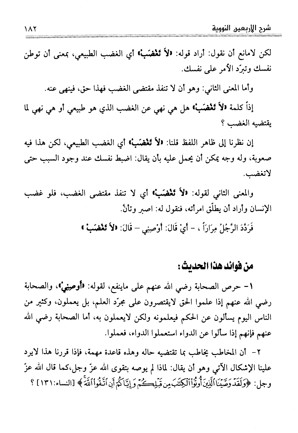 لكن لامانع أن نقول: أراد قوله: "لاَ تَغْضَبْ" أي الغضب الطبيعي، بمعنى أن توطن نفسك وتبرّد الأمر على نفسك.