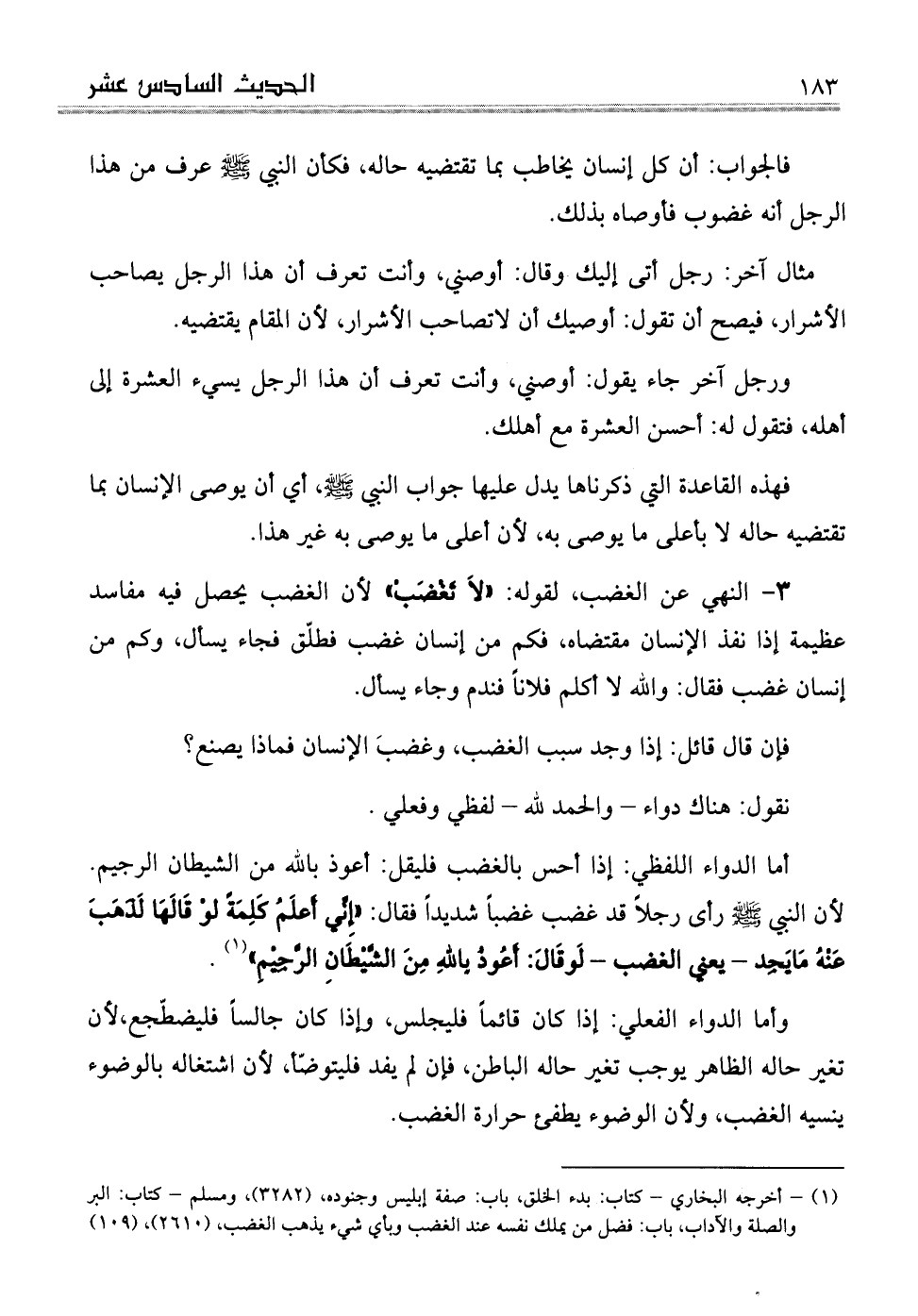 (¬1) أخرجه البخاري كتاب: بدء الخلق، باب: صفة إبليس وجنوده، (3282) ، ومسلم - كتاب: البر والصلة والآداب، باب: فضل من يملك نفسه عند الغضب وبأي شيء يذهب الغضب، (2610) ، (109)