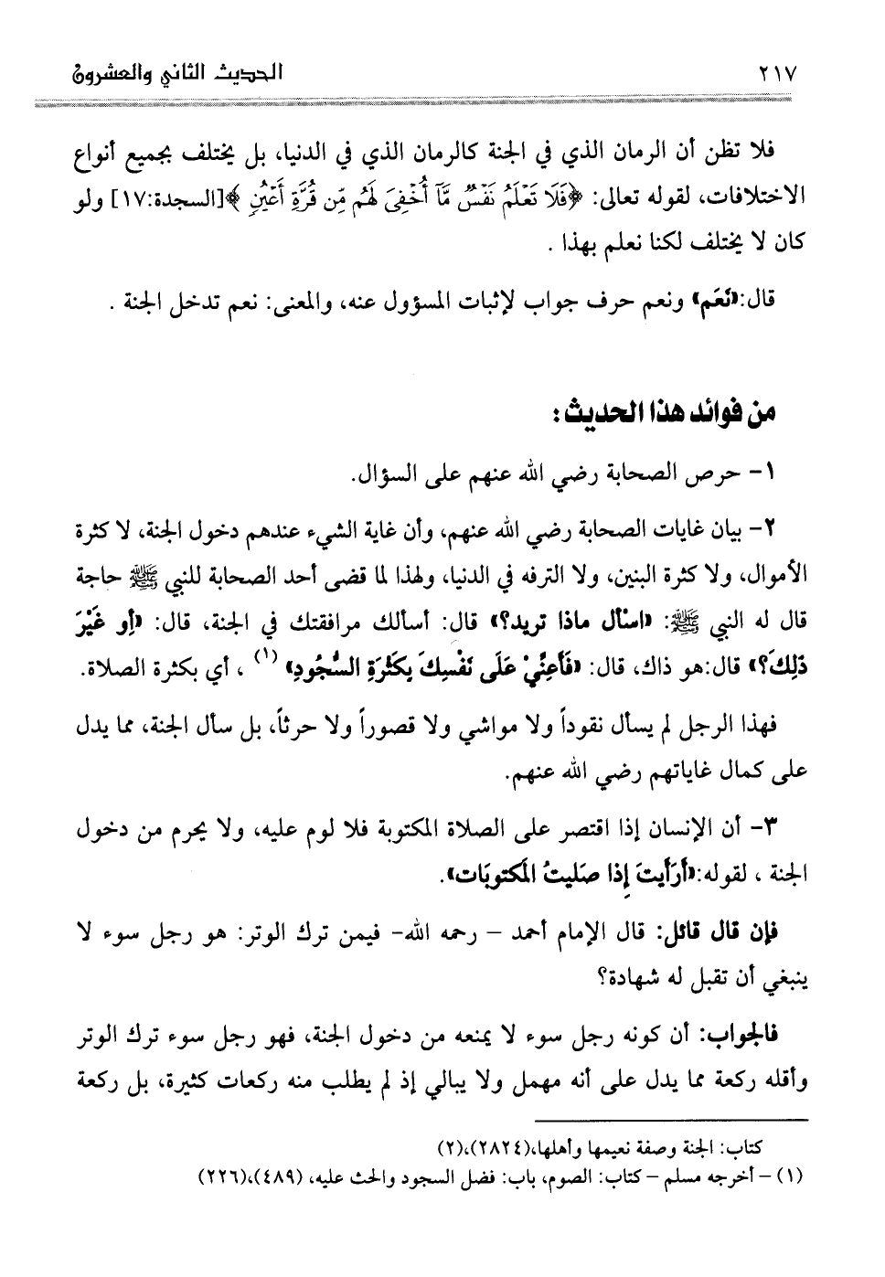 . 3أن الإنسان إذا اقتصر على الصلاة المكتوبة فلا لوم عليه، ولا يحرم من دخول الجنة، لقوله: "أَرَأَيتَ إِذا صَليتُ المَكتوبَات".