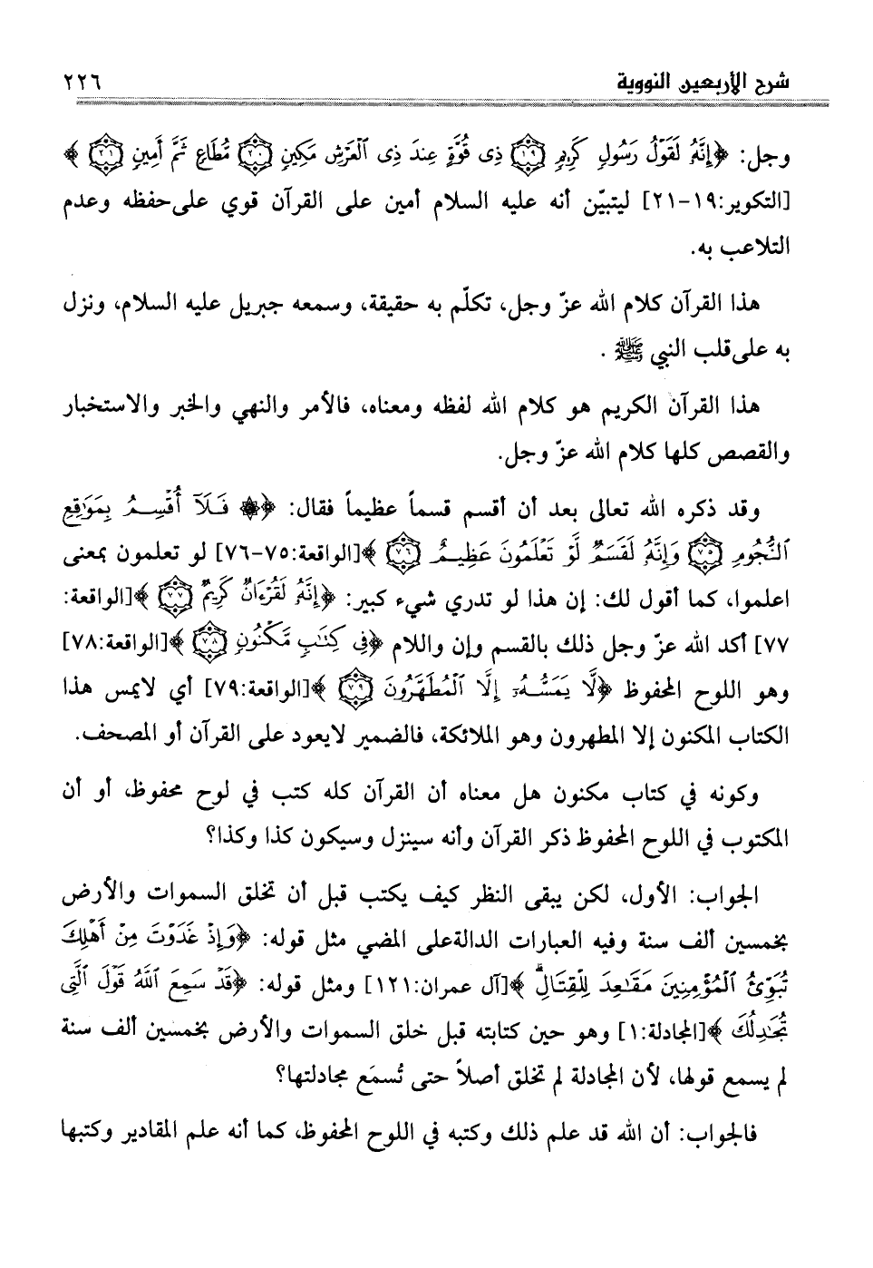 وقد ذكره الله تعالى بعد أن أقسم قسماً عظيماً فقال: (فَلا أُقْسِمُ بِمَوَاقِعِ النُّجُومِ*وَإِنَّهُ لَقَسَمٌ لَوْ تَعْلَمُونَ عَظِيمٌ) (الواقعة: 75-76) لو تعلمون بمعنى اعلموا، كما أقول لك: إن هذا لو تدري شيء كبير: (إِنَّهُ لَقُرْآنٌ كَرِيمٌ) (الواقعة: 77) أكد الله عزّ وجل ذلك بالقسم وإن واللام (فِي كِتَابٍ مَكْنُونٍ) (الواقعة: 78) وهو اللوح المحفوظ (لا يَمَسُّهُ إِلَّا الْمُطَهَّرُونَ) (الواقعة: 79)