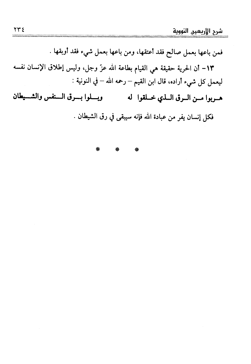 . 13أن الحرية حقيقة هي القيام بطاعة الله عزّ وجل، وليس إطلاق الإنسان نفسه ليعمل كل سيء أراده، قال ابن القيم - رحمه الله - في النونية: