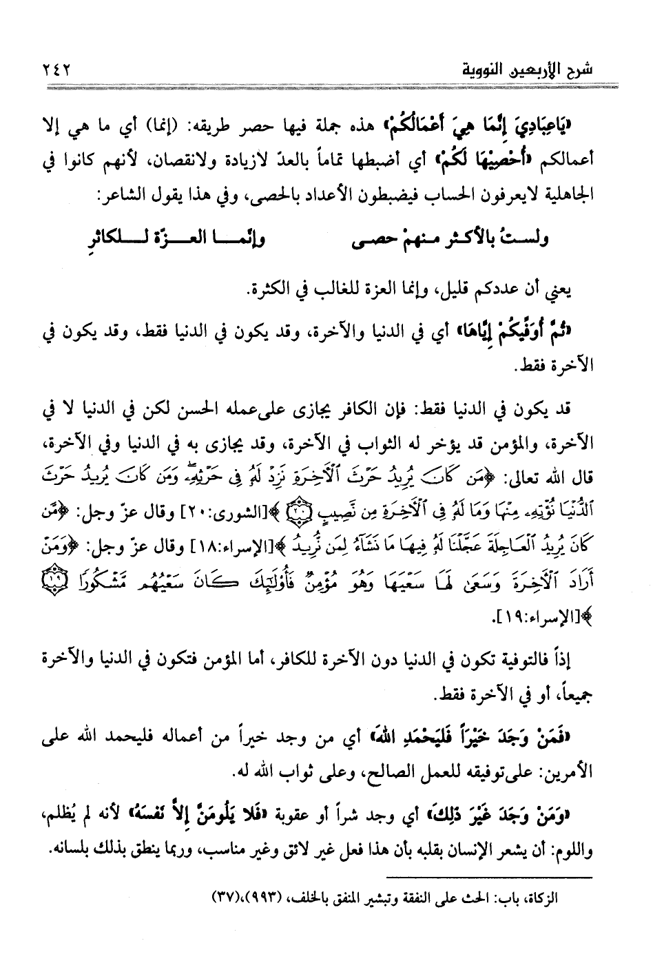 يَاعِبَادِيَ إِنَّمَا هِيَ أَعْمَالُكُمْ هذه جملة فيها حصر طريقه: (إنما) أي ما هي إلا أعمالكم أُحْصِيْهَا لَكُمْ أي أضبطها تماماً بالعدّ لازيادة ولانقصان، لأنهم كانوا في الجاهلية لايعرفون الحساب فيضبطون الأعداد بالحصى، وفي هذا يقول الشاعر:
