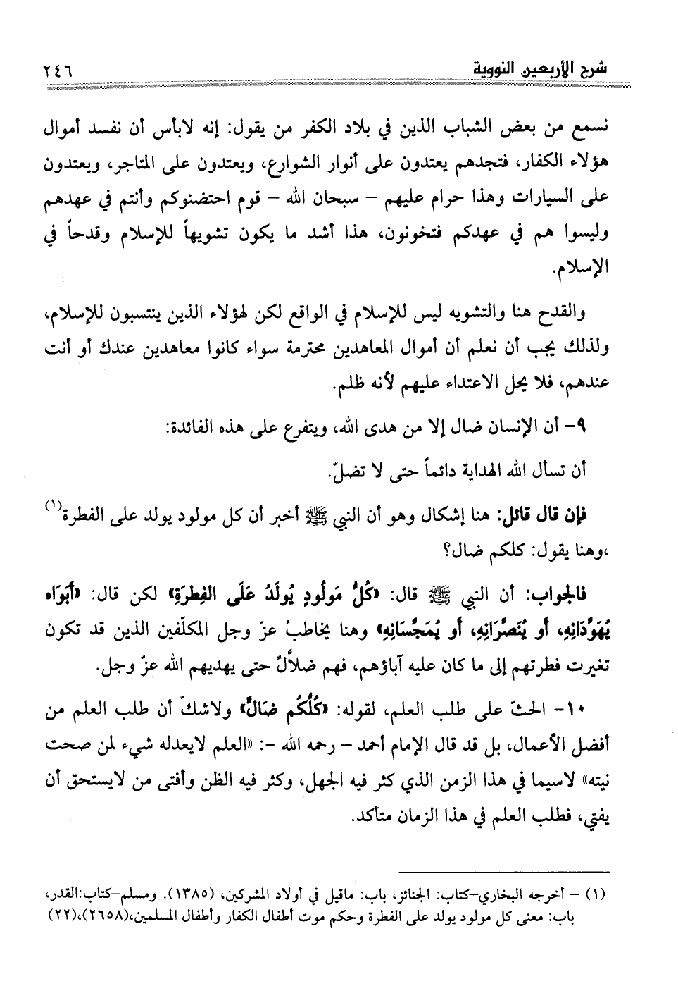 (¬1) أخرجه البخاري - كتاب: الجنائز، باب: ما قيل في أولاد المشركين، (1385) . ومسلم - كتاب: القدر، باب: معنى كل مولود يولد على الفطرة وحكم موت أطفال الكفار وأطفال المسلمين، (2658) ، (22)