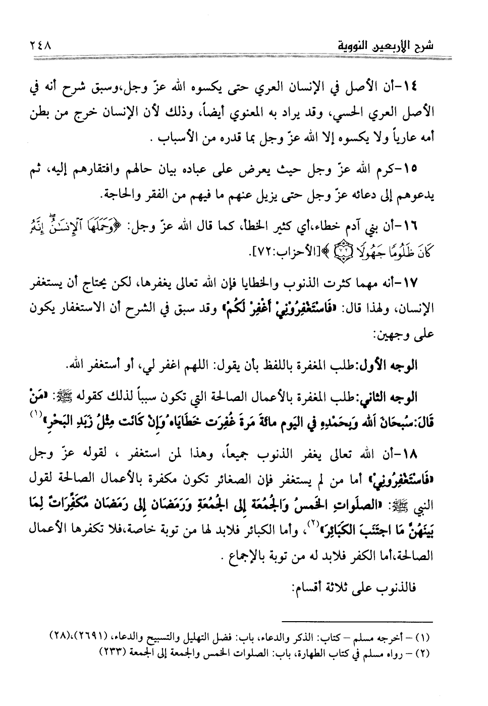 (¬2) رواه مسلم في كتاب الطهارة، باب: الصلوات الخمس والجمعة إلى الجمعة (233)
