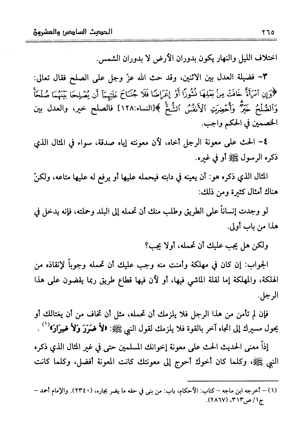 (¬1) أخرجه ابن ماجه- كتاب: الأحكام، باب: من بنى في حقه ما يضر بجاره، (2340) . والإمام أحمد - ج1/ص313، (2867) .